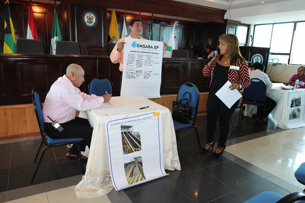 El informe de labores estuvo a cargo del Ing. Ramón Escobar Menéndez, Gerente de la entidad, quien en primer lugar destacó el apoyo incondicional de la actual administración Municipal, liderada por el Sr. Jonny Terán Salcedo - Alcalde del Cantón. Además supo manifestar que EMSABA EP busca siempre brindar un óptimo servicio durante los 365 días del año en beneficio de la ciudadanía.